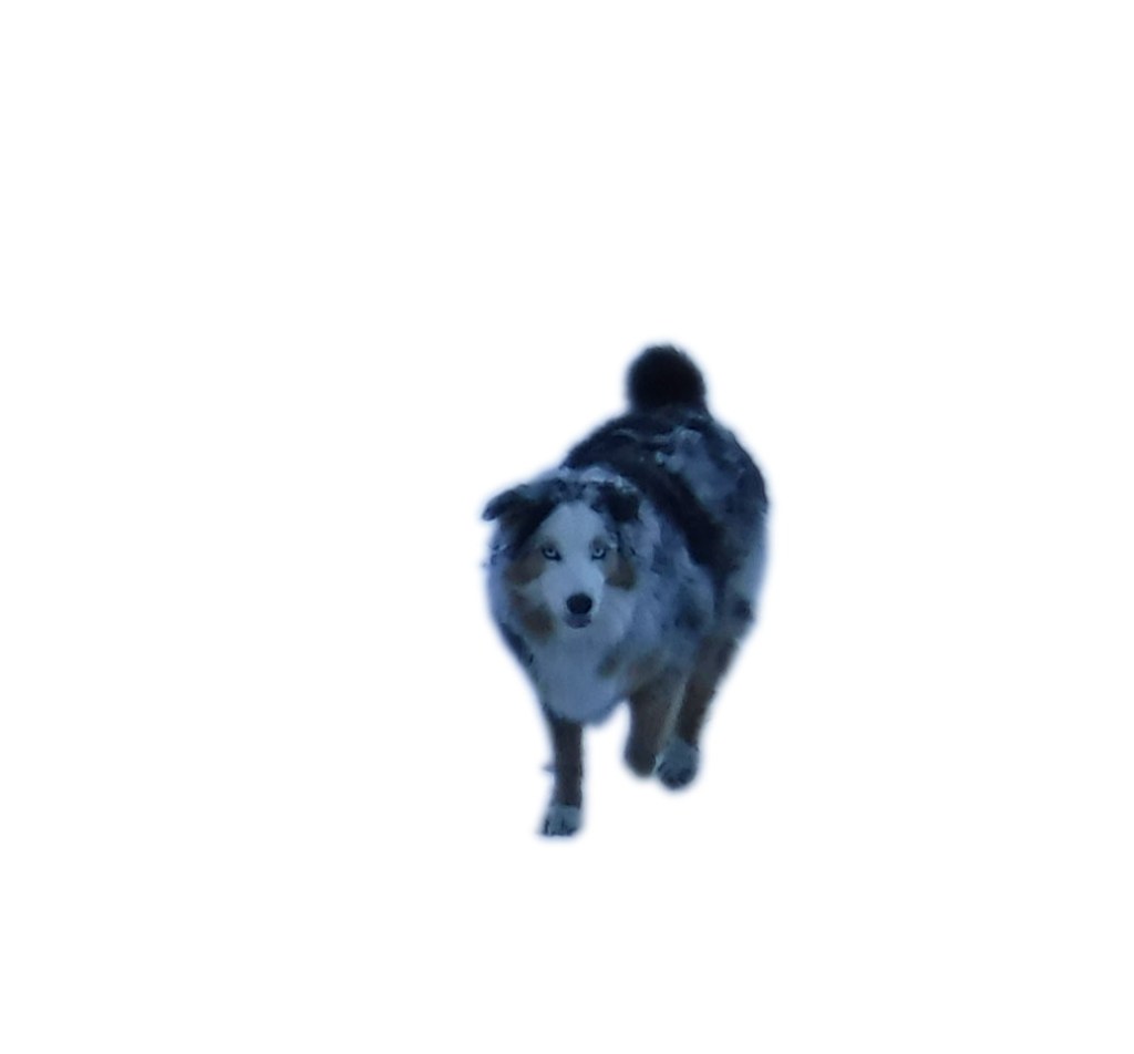 At first, I considered putting Frank himself into my landscape photo. But I’m a new learner and elected a simpler and easier addition. I’d add one of the dogs, and Abby in the middle seemed poised about right.