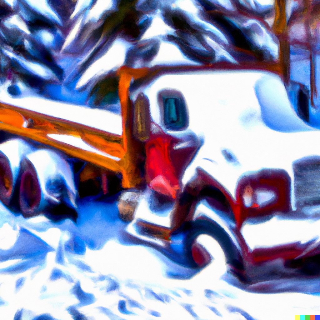 As they were loading, the truck’s hydraulics shifted that big truck. It began sliding down my steep driveway and got a front wheel completely stuck in deep snow. The guys couldn’t make that truck move, its rear wheels just spun. I was stunned to learn that heavy vehicle wasn’t a four-wheel, but a rear-wheel-only drive. In our efforts, they put on rear tire chains and I went searching for a shovel and kitty litter. The guys did lots of digging, attempted frequently to move the truck, and despite spinning wheels, and etc., didn’t give up. They finally got the wheel loose and the truck free again.