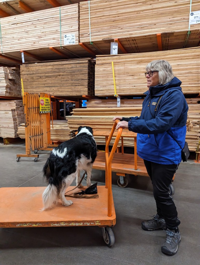 Yesterday, my funniest dog sighting was a Border Collie. He was riding on a flatbed that his person was pushing.