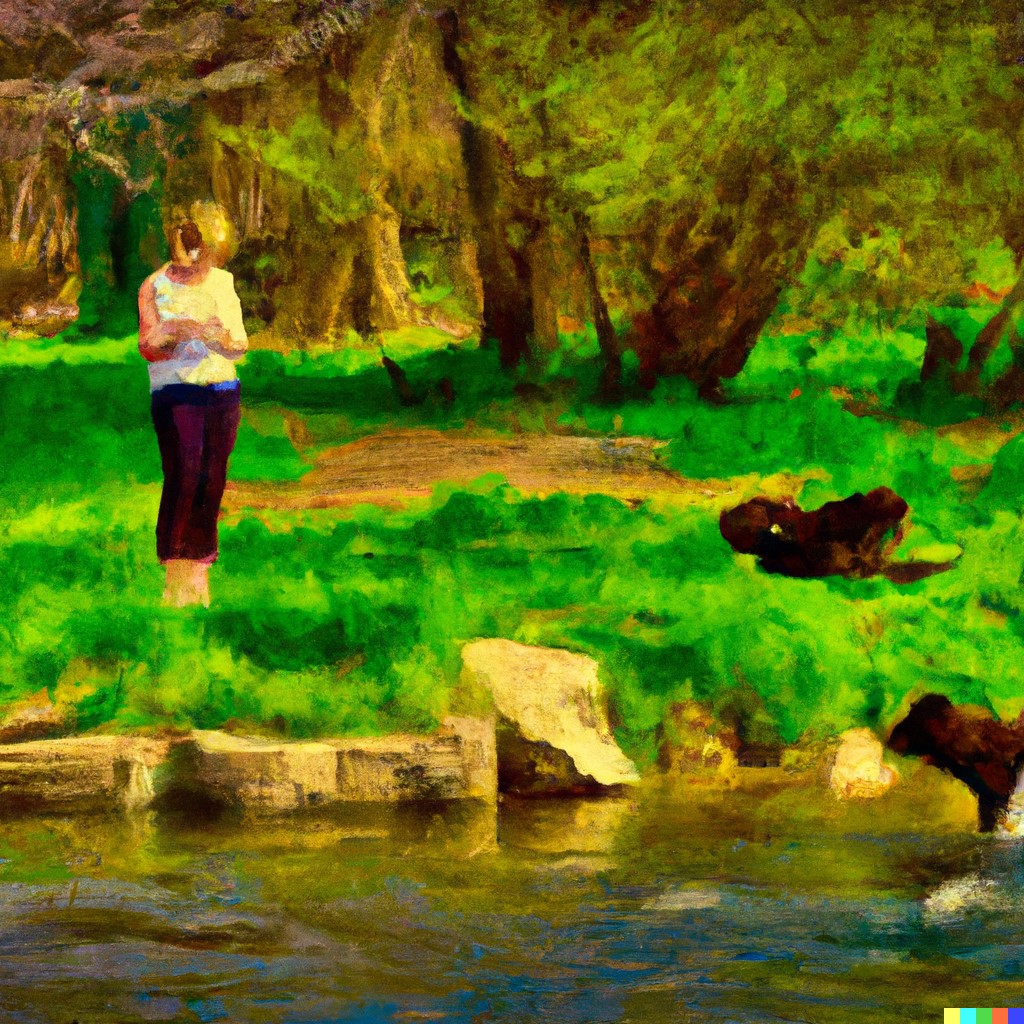 Yesterday’s setting was perfect for relaxing. Today, I might repeat by taking the dogs, and a lightweight chair with munchies, to an active irrigation canal. I visualize myself there, lulled by passing water with my dogs running and playing nearby. I could take a notebook and jot impressions; something interesting might evolve. The more I consider doing this, the “going for it” feels good.