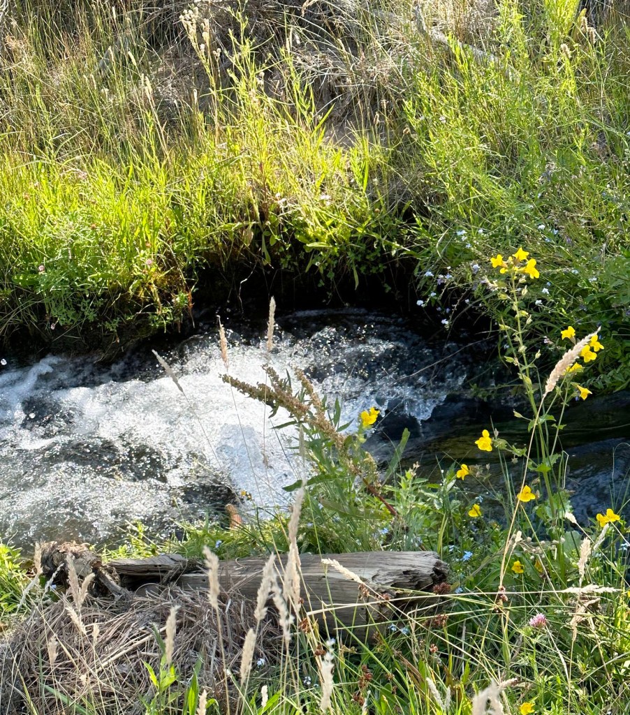 Although the area’s earlier, beautiful spring plants are disappearing, and being replaced by sprouting weeds, the canal still appeals. It has sections of rushing water with colorful plants and draws attention. I enjoy capturing images.