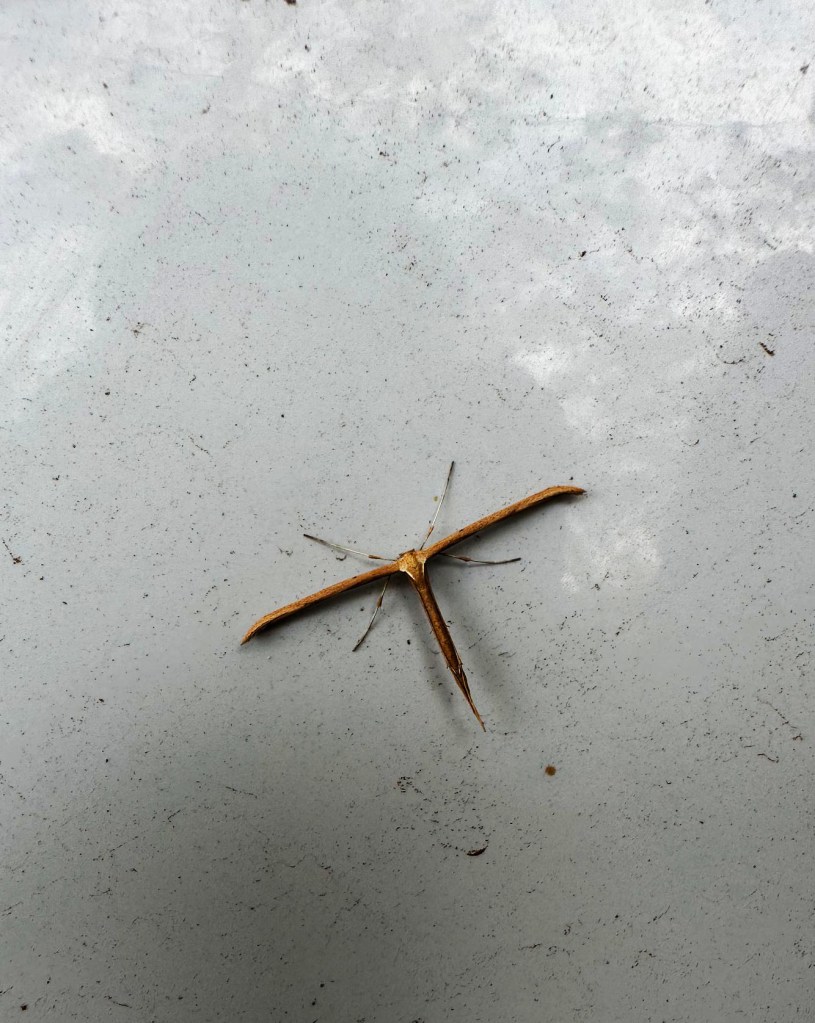 I’m casually into bugs, not the types that jam computers and motors, but the live, interesting-looking species that also appear harmless. The header photo is a recent capture of an insect parked on my vehicle. Its stick-like appearance got my attention as I like those gentle walking-stick bugs that appear this time of year. I will need to download an app in order to identify this bug unless a reader knows and says.