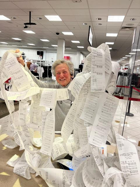 I radioed the store’s manager for assistance hoping she’d not find me guilty of mishandling the electronics. She arrived, glanced at the printed mass and that ongoing spitting out, and she laughed, couldn’t stop. I didn’t know why she wanted a photo and learned later that she had sent it to everyone.