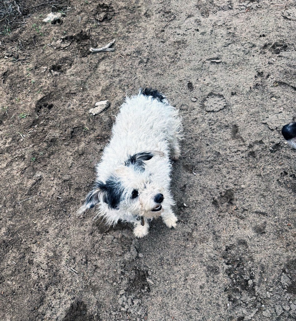 And the littlest, my very loyal Mitzvah, a Jack Russell/Poodle. She stays close and guards against any strangers and dogs that happen toward us.