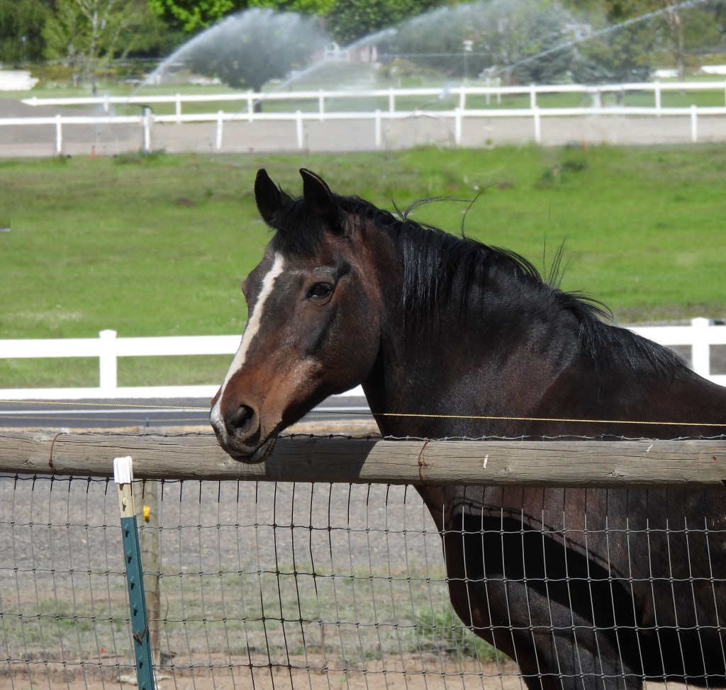 These header photos are of my horses and make me happy. They are full sisters: Rosie is the big sister, and Sunni is the baby. Both captures were distant to include the working sprinklers as summer symbols. Rosie’s more distant position allows for the two ancient, beautiful volcanos in the background: the spent Broken Top and a “maybe still-bubbling” South Sister.