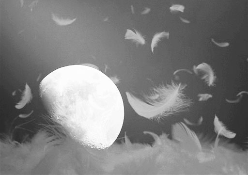 After examining everything my camera produced, I liked many images but wasn’t inspired to alter and combine any. What interested me was that my mind lingered on two images, particularly a filling moon and fluffy bird feathers. I don’t know why, but there they were, encouraging me to think about trying to work with them.