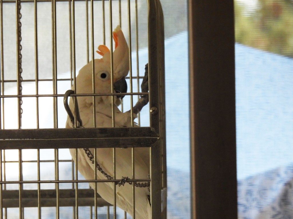 Peaches’ cage makes it difficult to capture him clearly enough. This image handles the image-interfering cage bars, but the structure beside a sliding glass door reveals part of a fuzzy outer deck. This shot uses the camera’s impressive automatic capabilities.