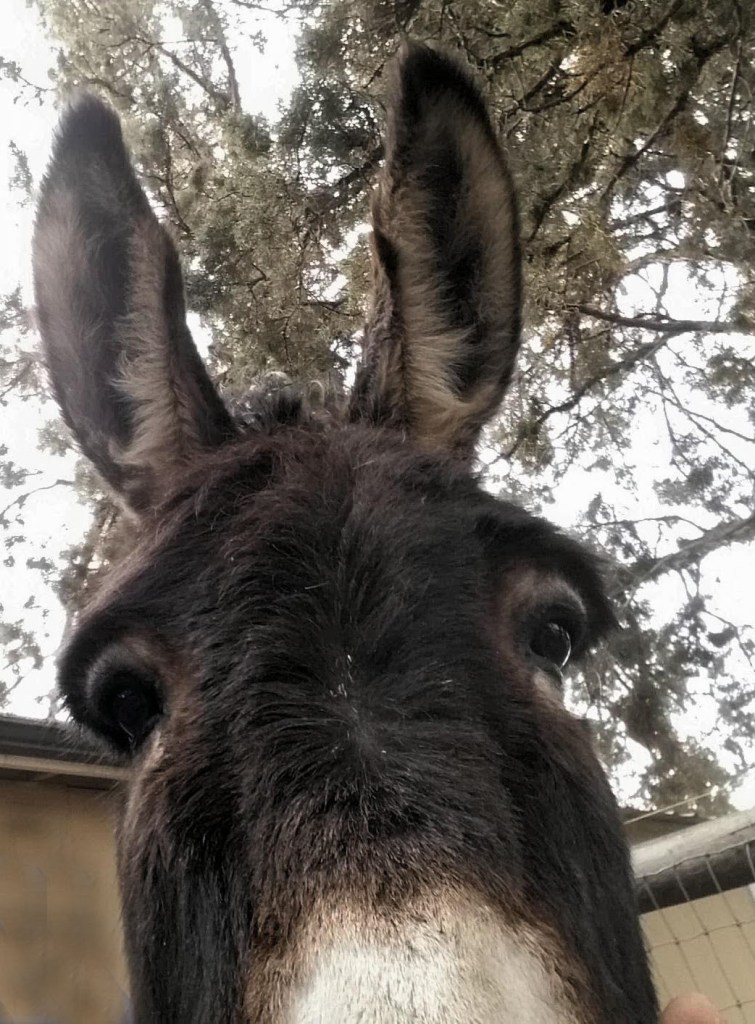 Here at the Ranch, my donkey Pimmy is a serious topic. She has been diagnosed with a metabolic condition labeled Cushing’s Disease. A couple weeks ago, I separated Pimmy from her horse buddies to feed her prescribed food and provide routine medications. Over several of the past days, she has appeared depressed by standing listlessly in a dim corner of the barn and not eating.