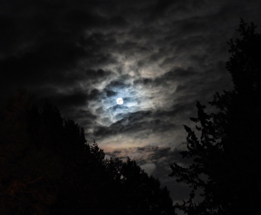 Yesterday evening, today’s header photo was my most clear capture of September’s (always) fabulous Harvest Moon. Ever since childhood, the full September moon has been my favorite. Its brightness lights the path and powerfully signals a transition to significantly different weather. In darkening fall evenings, the Harvest Moon’s brightness encourages us to imagine late harvests, the old way with horse-drawn equipment.