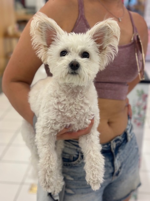 So, here’s a little cheer: a photo of one of the cutest pups you’ll ever see. Earlier this week, “Malti” and her person came shopping where I work.