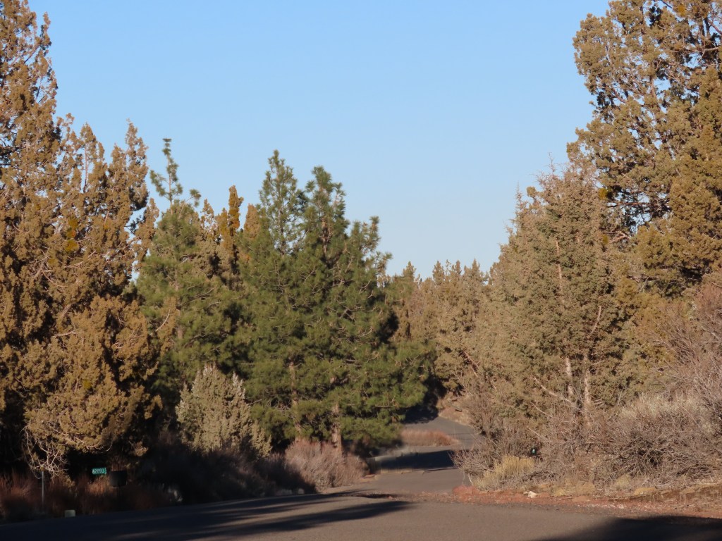 Today’s header photo shows the road ahead on our walk. To complete the loop, here’s another look at that same road—the section we’ve just left behind.