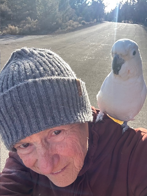 An earlier sweet Cockatoo in my life, named Crackers, and now Peaches, too, have convinced me of the high intelligence of birds. All birds—wild and domestic—are smart, but some species are famously so: members of the Corvid family (Crows, Ravens, Jays, Magpies) and the so-called “intelligent parrots,” like African Greys.