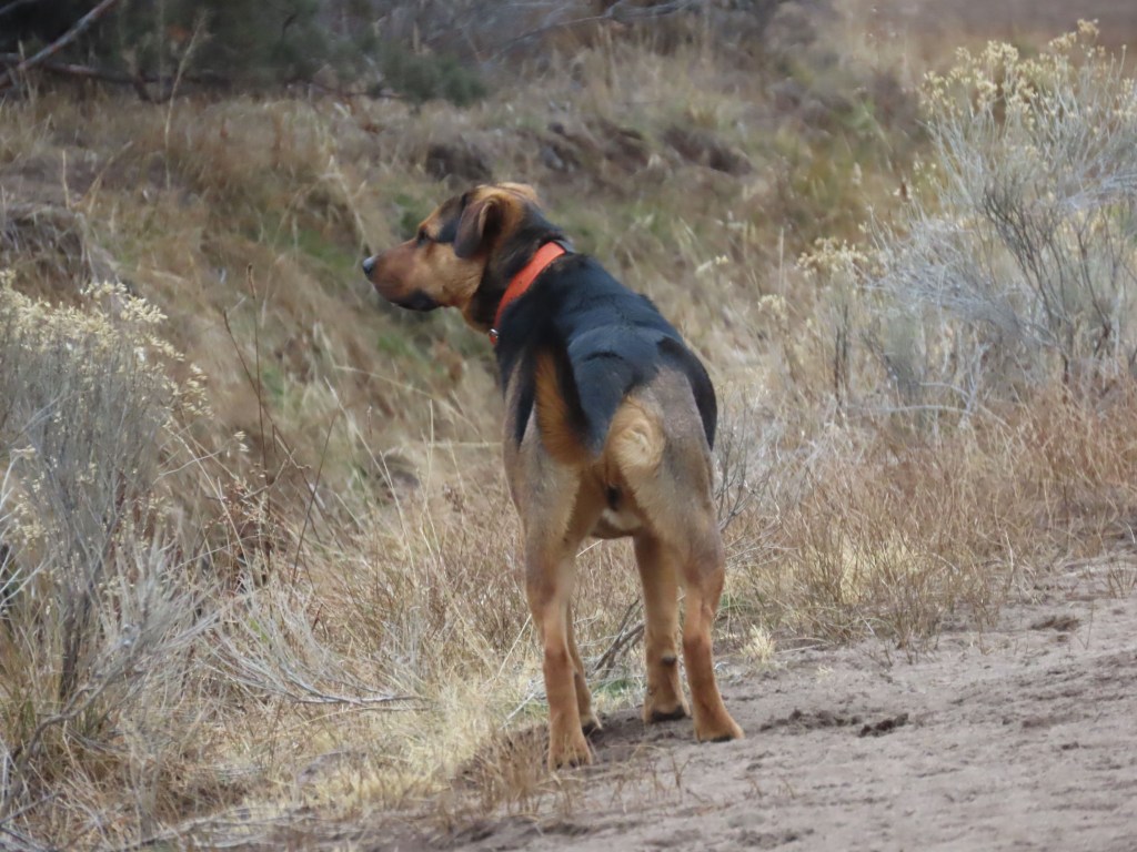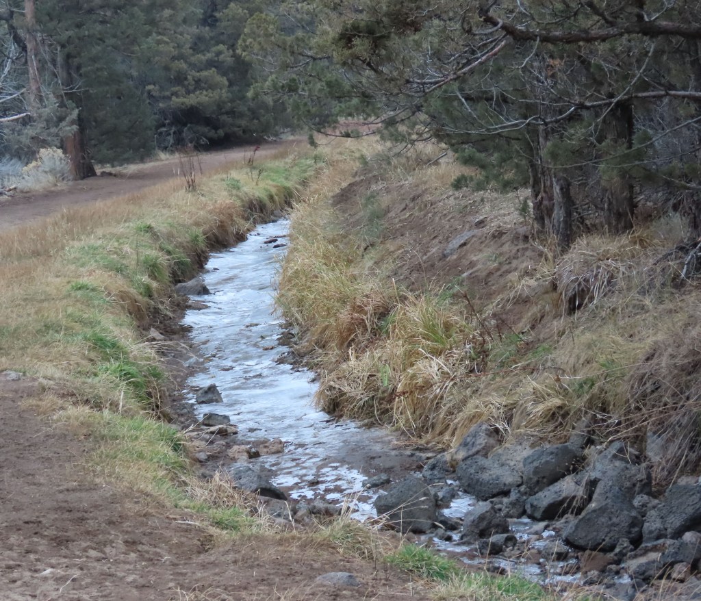 Yesterday, two of my dogs and I went for an outing in my favorite BLM. It’s local and small—only about a thousand acres—with an irrigation canal running alongside a well-trodden footpath. The canal is empty now, except for bottom ice in places.