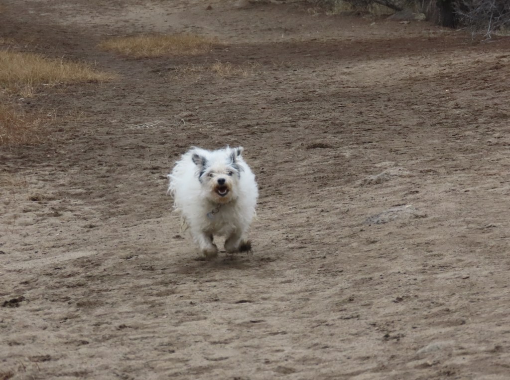This post isn’t merely about an outing in a beloved spot. It’s an update, with current photos of my younger dogs—and a reassurance that Chase still lives with me. That escape artist may be slowing down, working a little less at defeating confinement. He’s a happy camper.