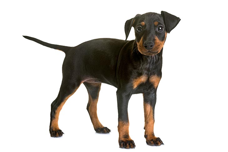 A photo from the internet matches to a tee my puppy, Chase. The AKC notes that it’s easy to recognize a MT, by its tight coat of rich mahogany tan and jet black, head long and wedge-shaped with tan spots above the eyes pointing up a watchful expression. A Manchester’s running motor has good reach in front, with a propulsive rear drive, powered by a muscular caboose.