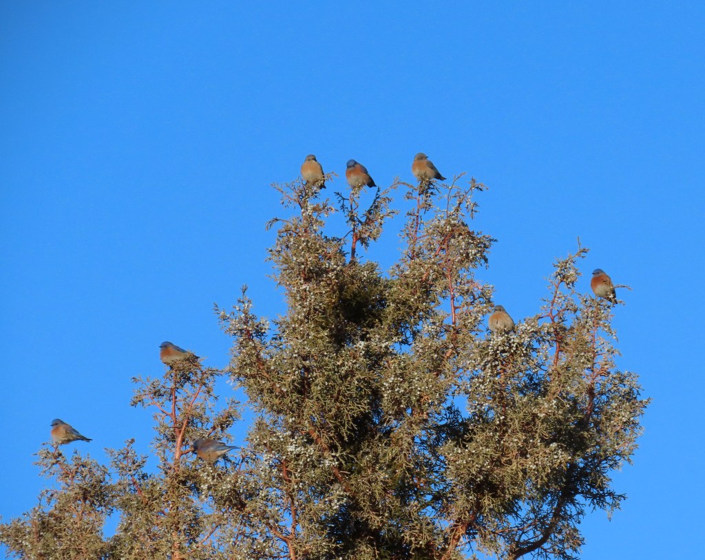 The header photo is one of the local plentiful mountain bluebirds. These are pretty little birds that I love, but aren’t particularly bright. Sometimes they nest in my barn and are dedicated parents, fun to see working hard to help their babies grow and fly.