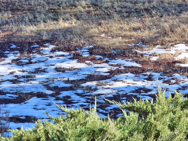 There’s more that’s new. Yesterday my zoom camera arrived. I took it outside to practice shooting and think we’ll become good friends. Today’s header photo from that camera is a quickie, snapped from faraway of standing snow. It was intended as a toss-away, but something about the image is attractive, somehow reminding me of shallow water. I didn’t adjust or alter it, so there, a work of art capture.