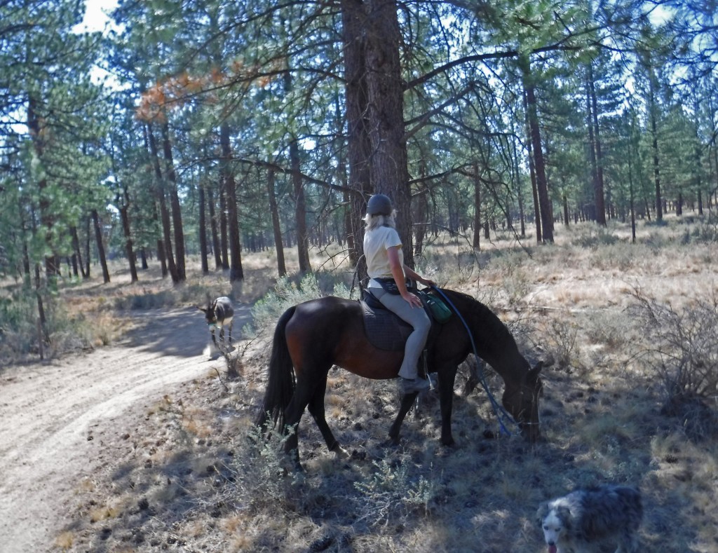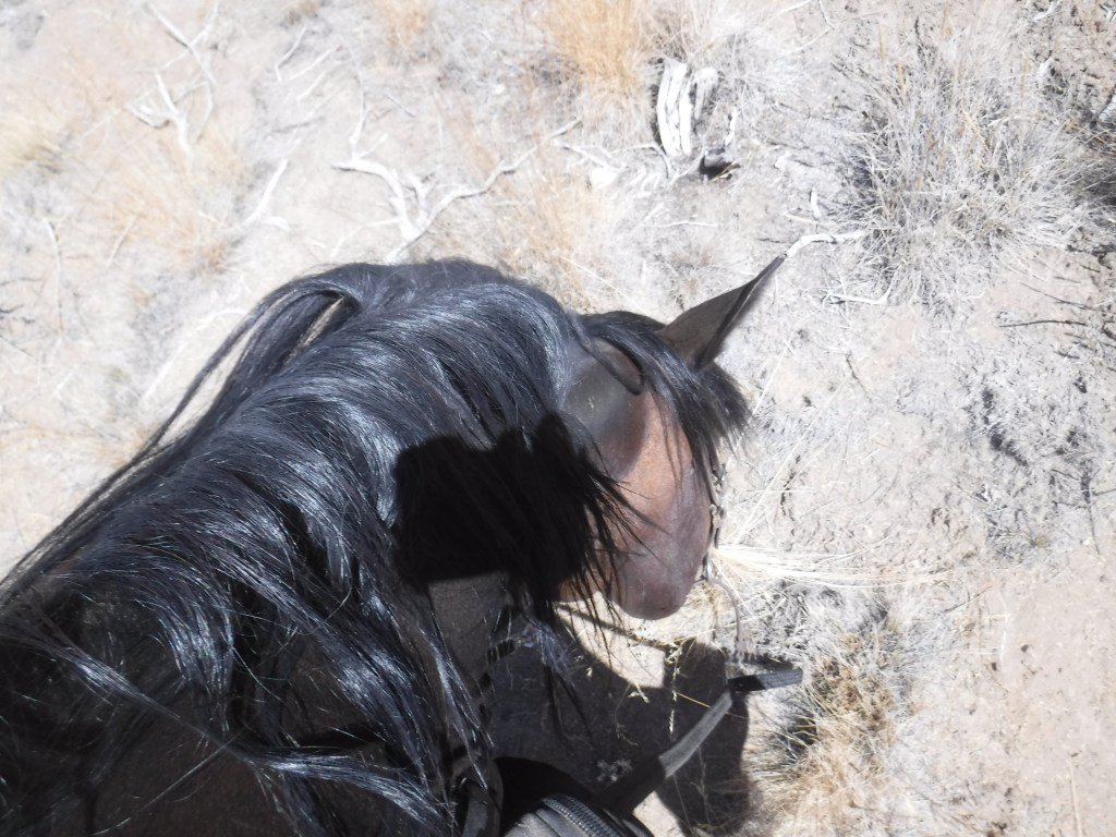 That fun ride accomplished much: (1) introduced a bitless bridle, (2) discovered ridge crossings (3) found an established horse trail, (4) invited cross-country riding, and (5) confirmed Sunni’s accurate sense of direction.