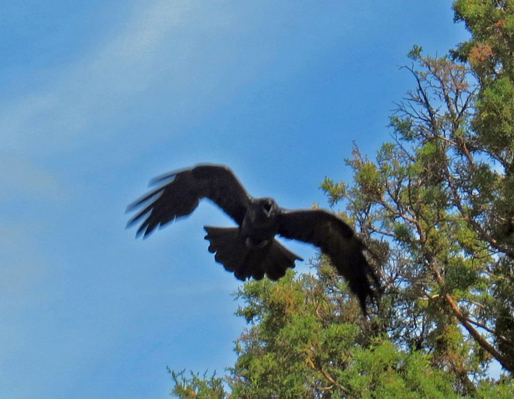 Our resident ravens constantly are overhead companions, especially nowadays while nest-building. They fly and communicate noisily while preparing a nest in some high tree. Which tree isn’t easily identifiable, but their highly apparent activities mean it’s nearby.