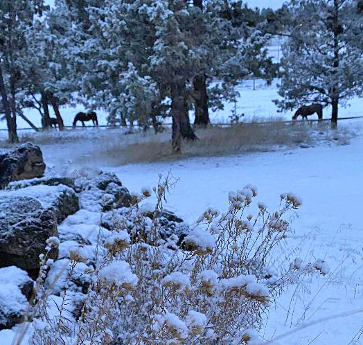 Yesterday, what a day! Throughout it, our area had had light snowing and no accumulating. But around 4 p.m., a head-on weather change killed my then-plan, to feed the horses before leaving for Redmond to attend a driving club meeting.