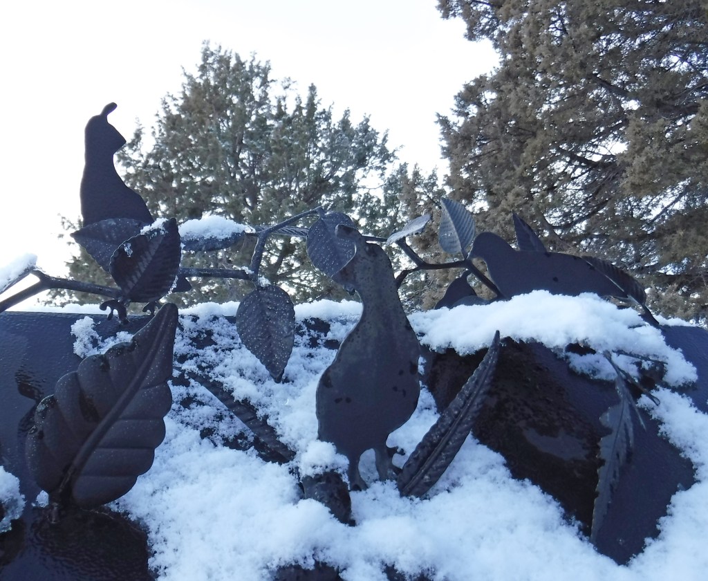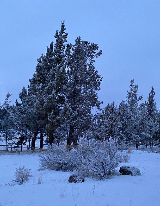 When sudden heavy snow and high winds took over, this environment dimmed. Snow accumulated quickly and winds whipped juniper branches into high action. From inside, I peered through one window after another to assess the storm’s velocity and potential length. Finally, the Driving Club’s leader and I, both feeling terrible about this, decided to cancel the meeting. I posted notices through Facebook and email, at about 4:30, or an hour before the scheduled start.