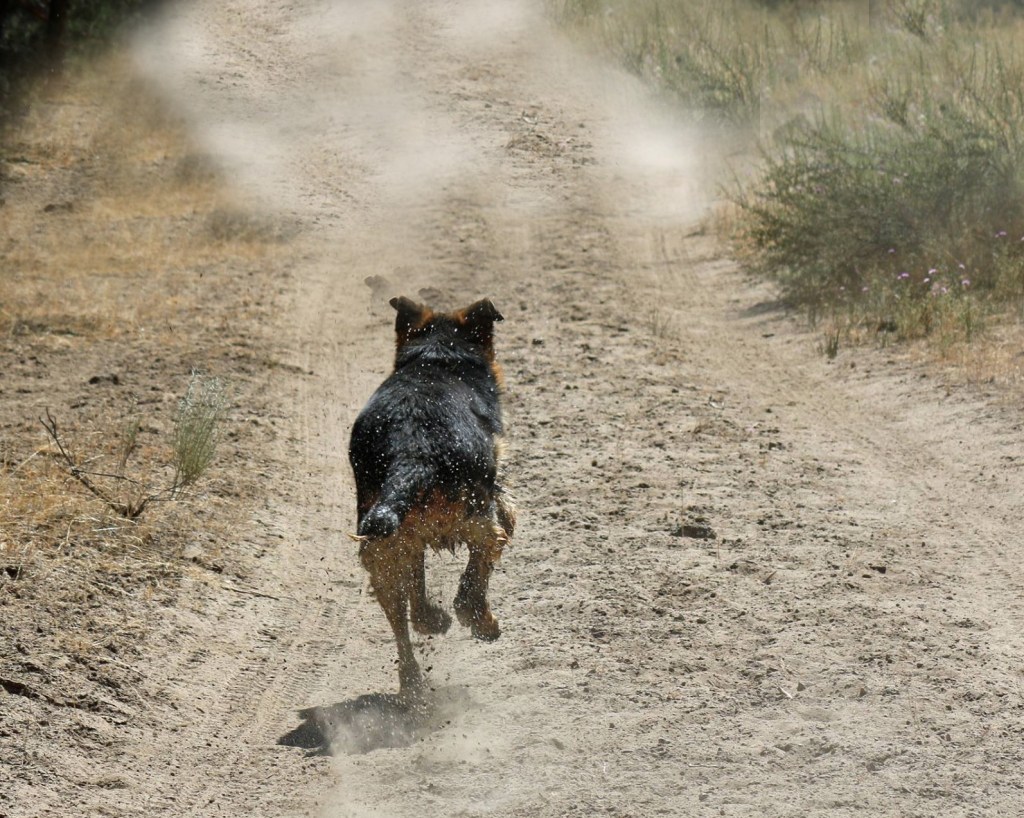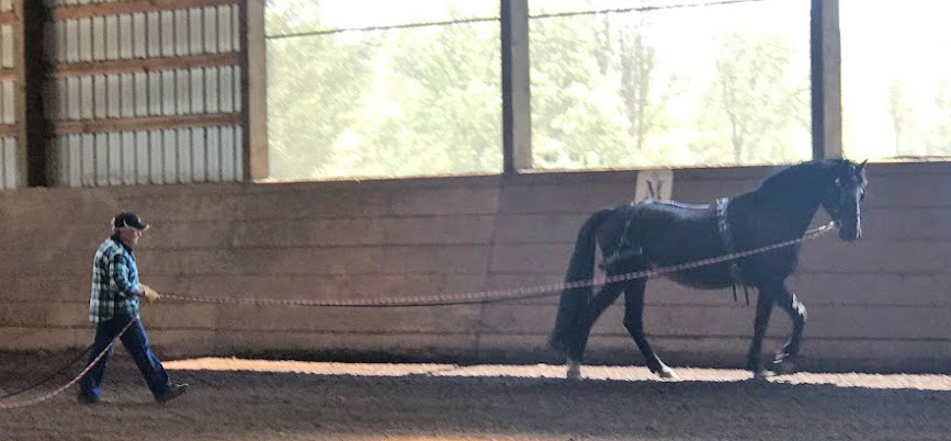 Meanwhile, another key goal is to start working again with Rosie-the-brat, my 23-year-old mare. The last time I was long-lining Rosie, she figured out that suddenly starting to gallop pulled the 30′ ropes from my hands, and she could run victoriously, freely, to her heart’s content. After she got loose a second time, I picked up a long whip and followed her while slamming the whip repeatedly against the ground and forcing Rosie to gallop until she got worn down enough to behave. If she gets away with misbehaving and dumps my handling, I’ll be toast. Today we’ll return to the dirt lot with the long ropes, and again find Rosie’s cooperative side.