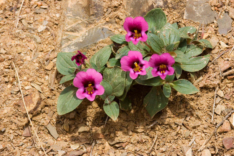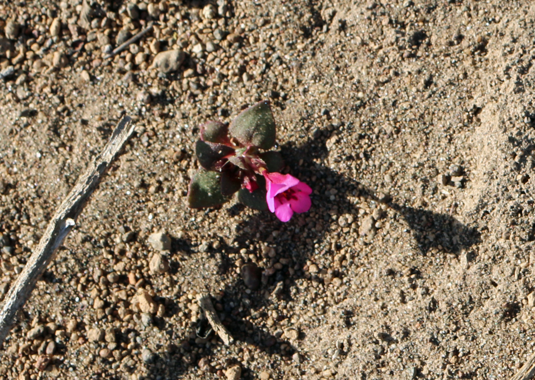 For awhile, we’d been discussing the social impact of improved facial recognition software. That got us wondering if there exists an available plant recognition software. Back at home, I played around, downloaded an app, and went searching for tiny plants. I found a couple near my mailbox down by the street and rooted in sand. I had to bend very low to photograph them, and Voila! The app informed me that I’m host to a bitty bunch of Monkey flowers near an even-more bitty bunch of Blue-eyed Marys.