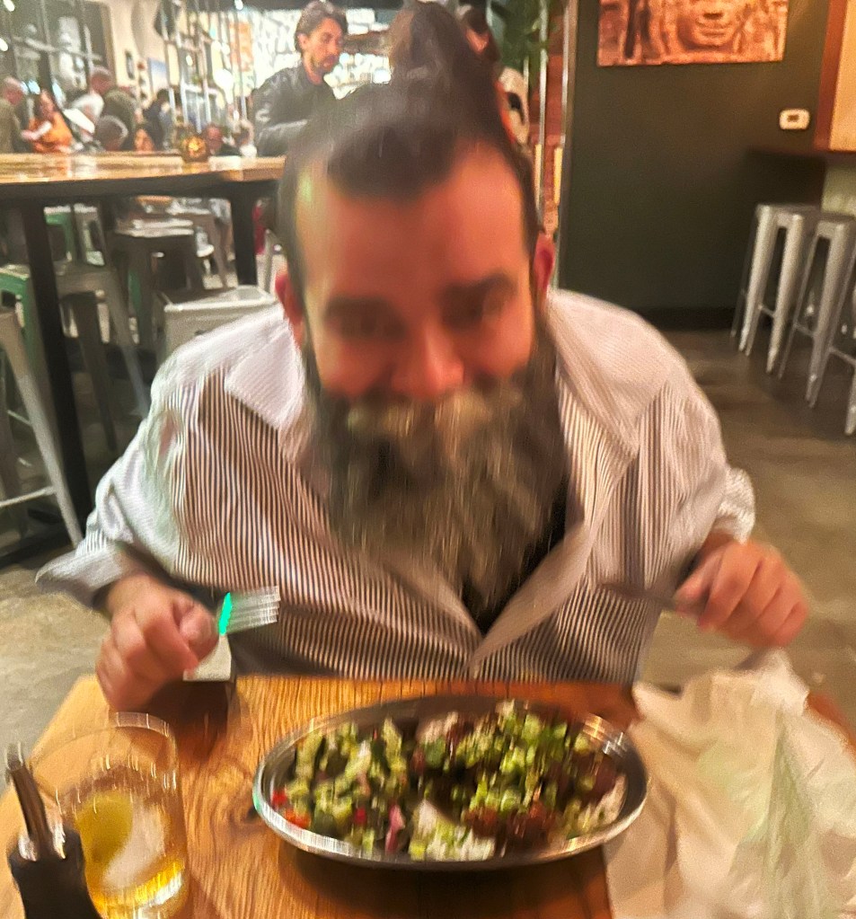 The header captures my friend and co-worker Adrain tackling his crispy chicken bowl. I’m sitting opposite him and will do the same after my camera action. That was yesterday evening, at a restaurant called Spork, where we met for dinner.